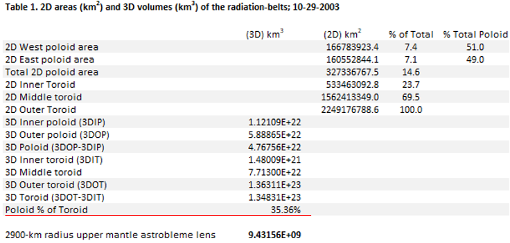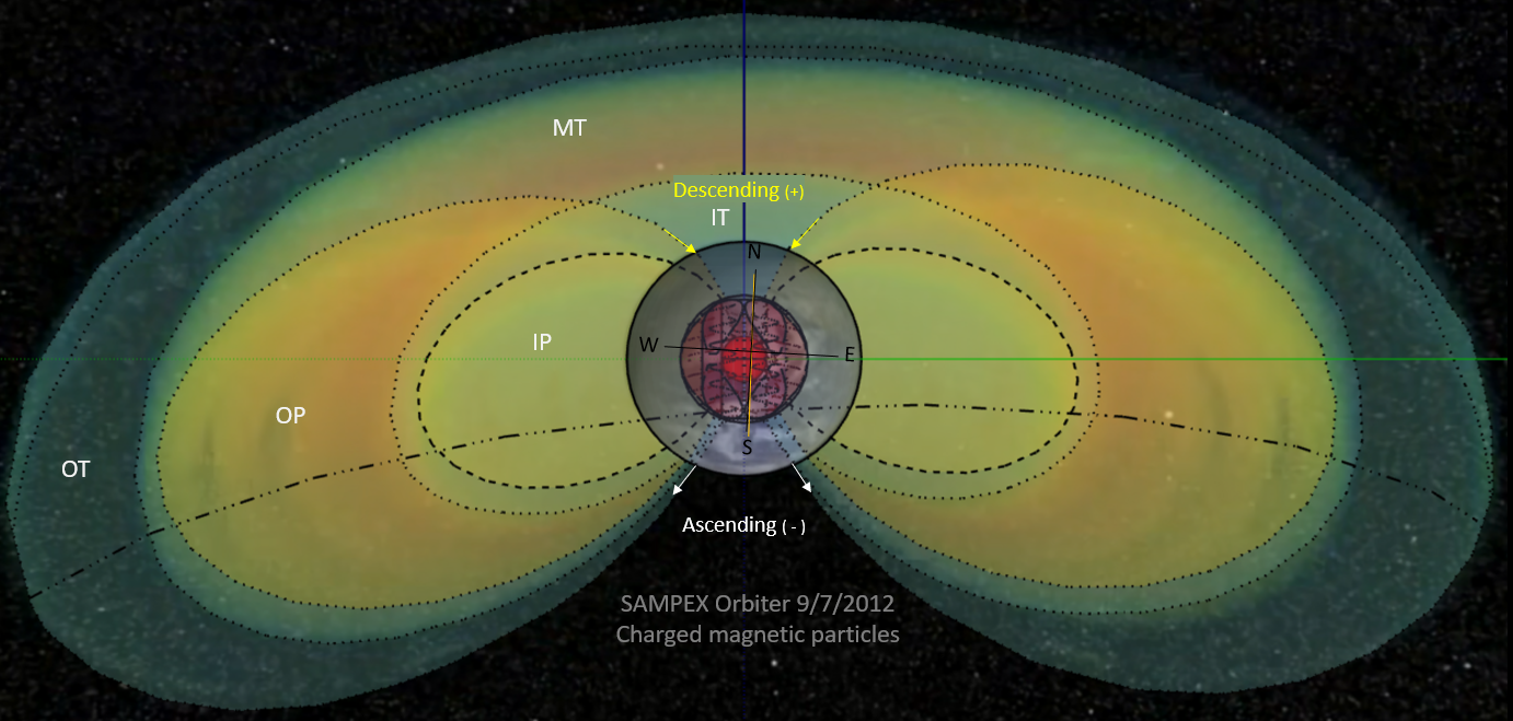 The U.S. National Space and Aeronautical Administration (NASA) releases short videos that characterize the geospatial and temporal nature of Earth's external radiation belts gained from their 2012-2020 SAMPEX mission (figs. 1 and 2). The inner radiation belt pulsates on a daily basis and they continuously fluctuate in extent depending upon the intensity of the solar winds and Earth's inductive response (fig. 2). A snapshot of the SAMPEX-sampled radiation belts from 09/07/2012 was used to quantify their 2D and 3D components based on their false-color representation that highlights regions in space surrounding Earth where various atomic particles in the Solar winds get trapped and temporarily held by the radiation belts. My interpretation of the SAMPEX data into the two, main, poloid and toroid dipole components is summarized in figures 4 to 9. As summarized in figure 6, the toroid moment envelopes the smaller poloid and is estimated to be about three times as large. Figures 8 and 9 show how the respective total-field components overlap.